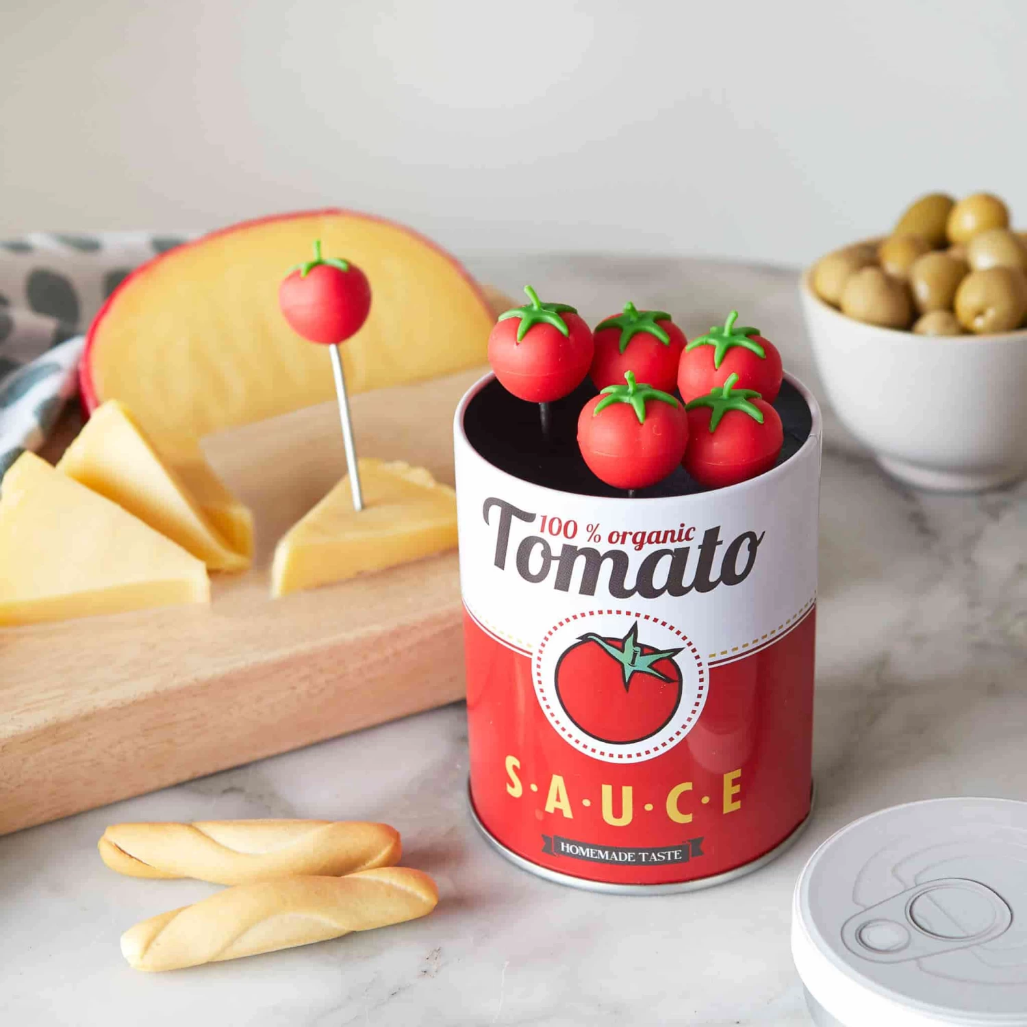 The cocktail sticks are presented in a striking red and white can, designed to look like a tin of tomato sauce. The storage tin is reminiscent of Andy Warhol’s famous soup cans, so this is an ideal present for fans of pop art, too.