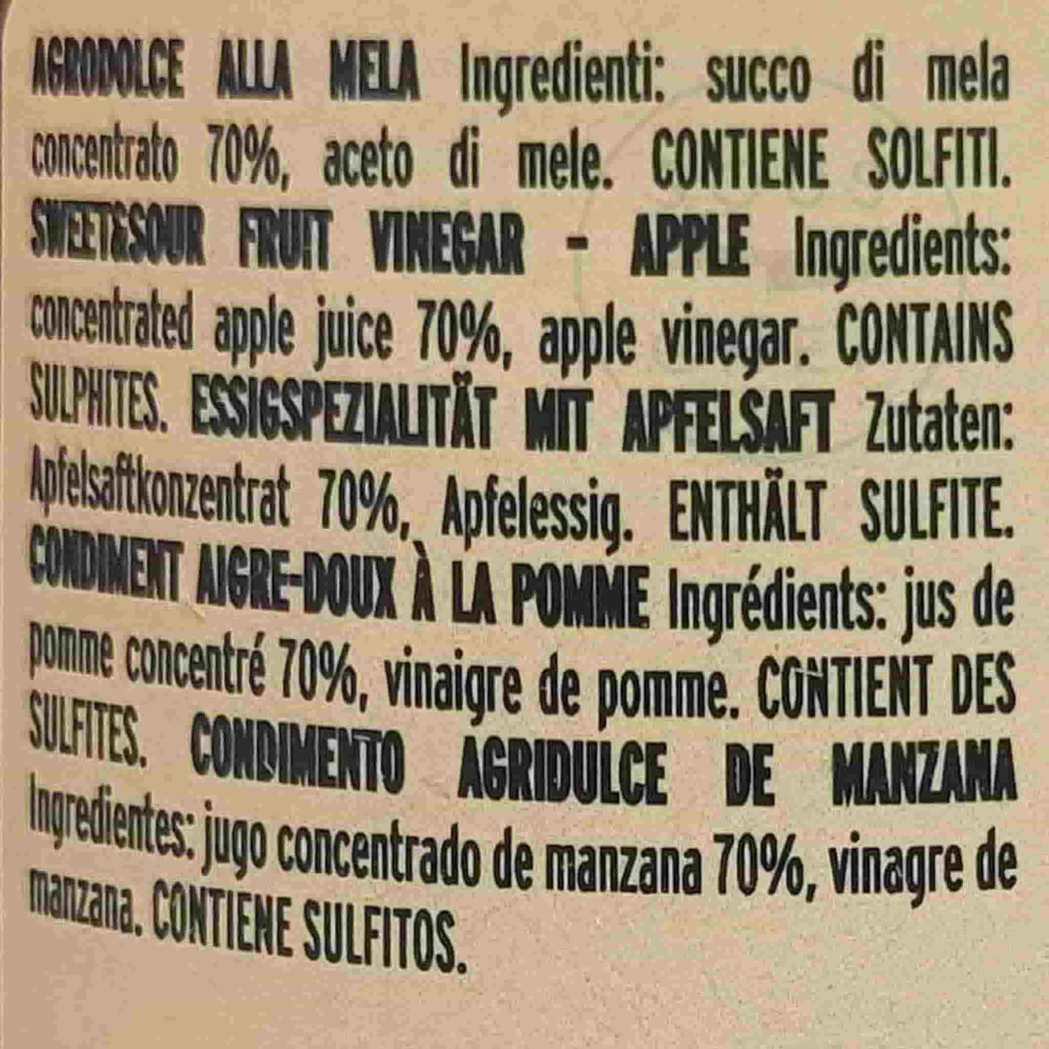 Ingredients: Concentrated apple juice 70%, apple vinegar.